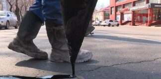 На дорогах Уссурийска рабочие проливают швы